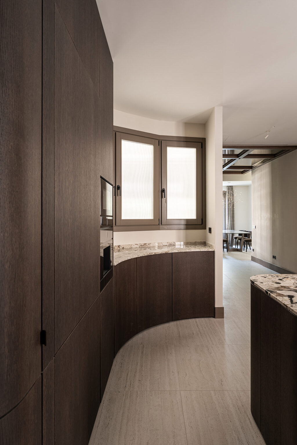 El diseño sin tiradores no está reñido con la calidez. De hecho, encaja perfectamente con materiales nobles como la madera natural, el mármol o los porcelánicos de gran formato. Al reducir el número de elementos, estos materiales ganan protagonismo, y cada textura, veta o